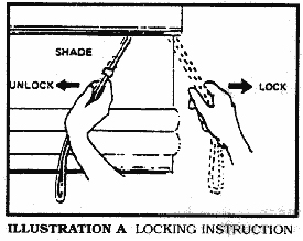 Both Roman & Roll-Up shades have the same basic hardware and operating procedure. Cords, whether installed on the left or right side have the same locking mechanism. (See illustration A). To raise the shade merely pull on the cord and release the cord when i has reached its desired height. To lower the shade, pull the cord to the center of the shade with a slight tug. Then keep tension on the cord at that angle slowly let the cord go up, thus lowering the shade. if the shade should bind, check the cord alignment over the pulley (under valance).