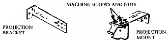 If you ordered the optional projection brackets, mount them to the wall or window using two screws. Attach the installation and center brackets using two machine screws and nuts per bracket.