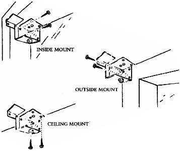 Use proper screws. Two screws are supplied for each mounting bracket. These are suitable for most wood and sheet metal surfaces. On wood surfaces pre-drill holes for the screws using a 1/16" drill bit or make a starter hole with a finishing nail and hammer or awl. On sheet metal surfaces use a 3/32" steel drill bit. For plaster, drywall, concrete, stone, brick or tile use appropriate plugs, anchors or screws of the proper type and length. Follow the manufacturers recommendations.