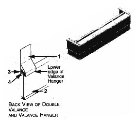 1. Clip Valance hangers(1) to the back of the double valance so that the "T"(3) section of the hangers fit into the trim groove(4)
