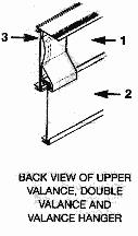 • Flex the upper edge of the Valance Hanger(1) to snap it into the top back edge of the upper valance(3).Repeat for returns, one hanger per return.