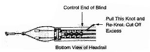 If the cord is too long you may adjust it. Traverse louver holders to stacked position. Grasp knot located along the inside of the track and pull out excess cord. Re-knot and cut off excess.
