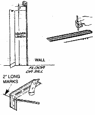 1. Mark your door/window frame or ceiling. Measure 1" from wall and make pencil marks (DEPTH MARKS).