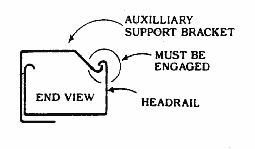 Insert the headrail into the mounting brackets. If an auxiliary support bracket is used. be sure that it is properly engaged with the headrail.
