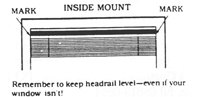 For an inside mount,make certain the headrail is level and clear of obstructions. Make pencil marks below the headrail on each end. The right hand and left hand installation brackets will be placed on these marks.