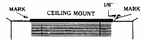 For a ceiling or overhead mount, hold the blind against the ceiling centered in front of the window and make pencil marks 1/8" beyond the end of the headrail. The right and left installation brackets will be placed on these marks.