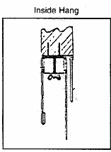 Inside Hang(ceiling mounted)- Shade is measured and assembled to fit inside the window casement with mounting brackets that is installed to the top casing with screws placed opposite corners. The wing nuts are removed. The screws slide through the slots on the headrail and are secured by a wing nuts.