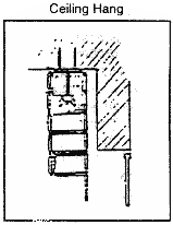 Outside Hang (ceiling mounted)- Shade is measured and assembled to overlap the window casing. The mounting brackets are then installed to the ceiling by means of screws or toggle bolts placed at opposite corners. Remove wing nuts. The screws slide through the headrail slots and are secured with wing nuts.