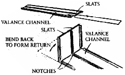 On outside mount blinds, the valance channel is notched or pre-formed on the backside to allow the ends of the channel to be formed into returns. Bend ends back to form returns.