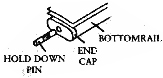 • To secure bottomrail, insert hold down pin into unslotted bracket first. Then, snap opposite pin into slotted bracket.