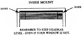 For an Inside Mount, make sure the headrail is level and clear of obstructions. Make pencil marks below the headrail on each end. The right hand and left hand installation brackets will be placed on these marks.