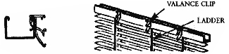 Snap the valance clips over the headrail before mounting the blind to the installation brackets. A valance clip is furnished for every ladder. Install the valance clip next to each ladder. If the clips are mounted directly in line with the ladders, they may catch the cords inside the headrail.