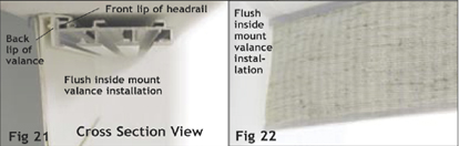 Note: For inside mount applications you must attach the valance to the headrail before installing on the brackets otherwise, once the headrail is installed you will be unable to attach the valance (fig 20&21).