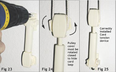 You can mount the cord tension pulley to the wall for outside mounts. Once you have decided on the location, make sure the cord has enough tension while still moving freely through the pulley and install with screws provided.
