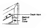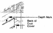 • Hold valance up. Line back of dust cover (on valance) up with DEPTH marks (step 3). Drill holes through valance at the mounting into dry wall, use wall anchors (not included) and push into drilled holes.