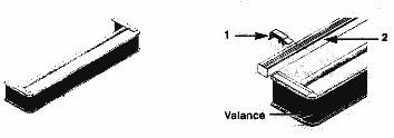 • Flex the upper edge of the Valance Hanger(1) to snap it into the top back edge of the upper valance(3).Repeat for returns, one hanger per return.