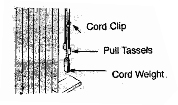 To avoid Strangulation, A Cord Weight or Cord Tension Pulley should be attached to the cord and then secured to the wall. Two pull tassels should be attached to the chain.