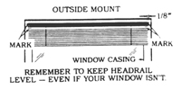 If your blind is to be installed as an outside mount. Hold the blind level and center against the window casing. Mark the casing with a pencil just below the headrail on each end. Also mark the window casing 1/8" beyond the the end of the headrail. The right and left installation brackets will be placed on these marks.