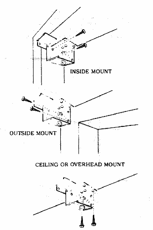 The brackets may be mounted using two screws in several different orientations depending upon your needs: